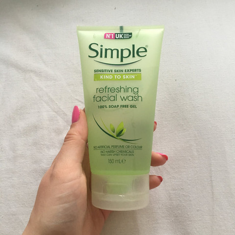 I always start my morning and end my night by washing my face with Simple refreshing facial wash. I've stuck with it since high school because it does wonders for my skin.